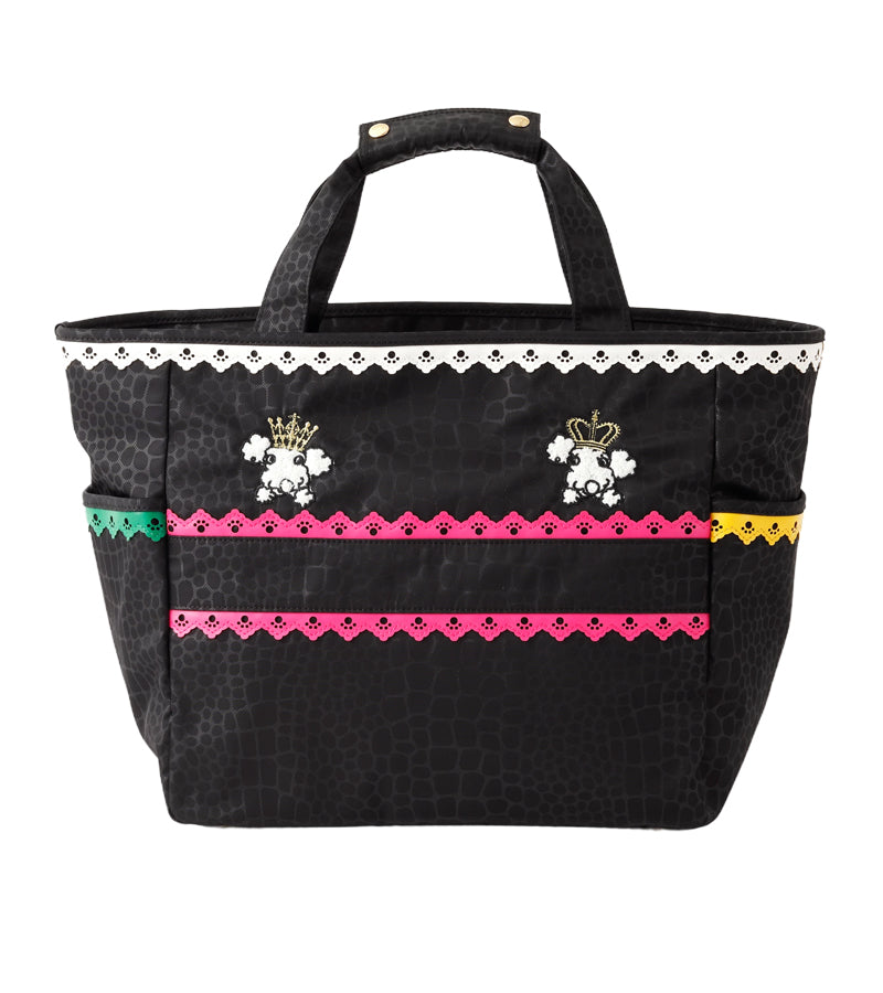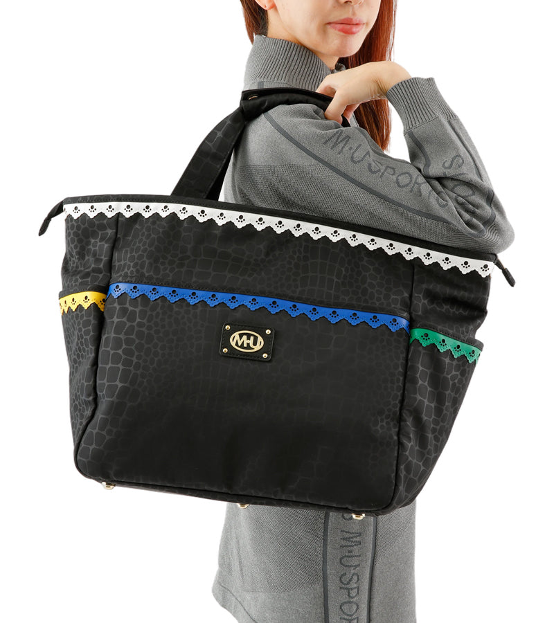 配色のパンチングレース使いが特徴的なトート型ボストンバッグ