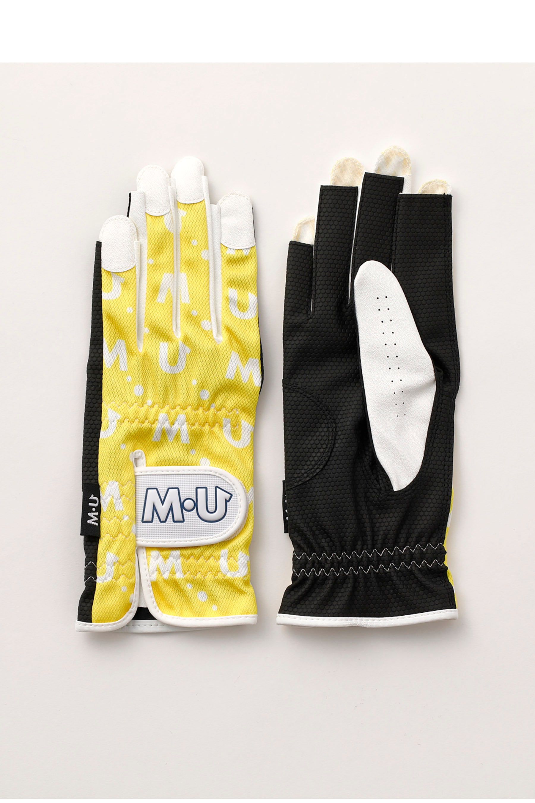 モノグラム総柄+白のポリウレタンバイカラー使いの春夏らしい爽やかなカラーリングでコーディネイト幅広いスマートフォンも操作で着易い指先無しタイプのグローブです。