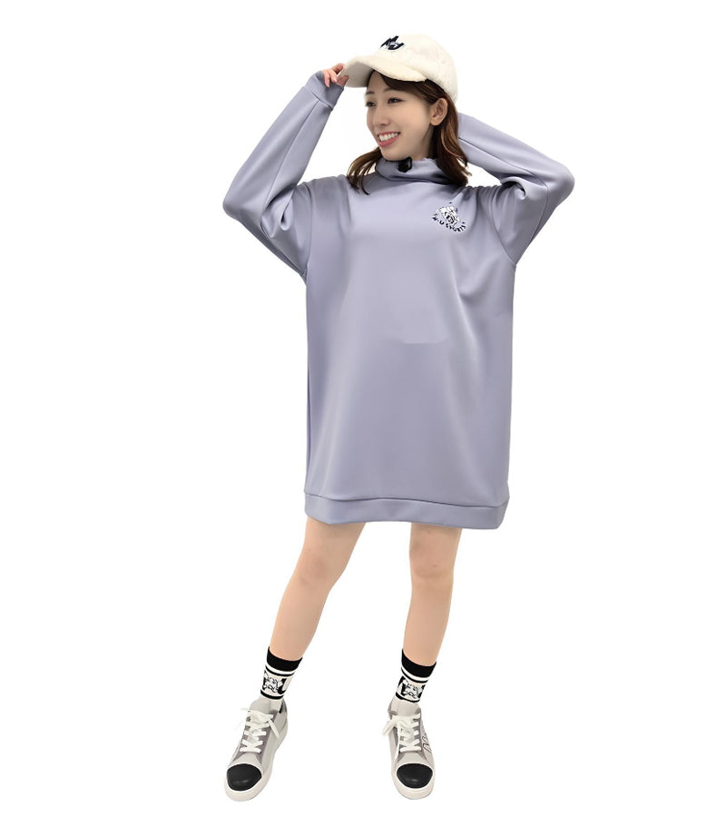 ソフトな風合いの生地で軽量・防シワ機能もあるボトルネック長袖ワンピース。