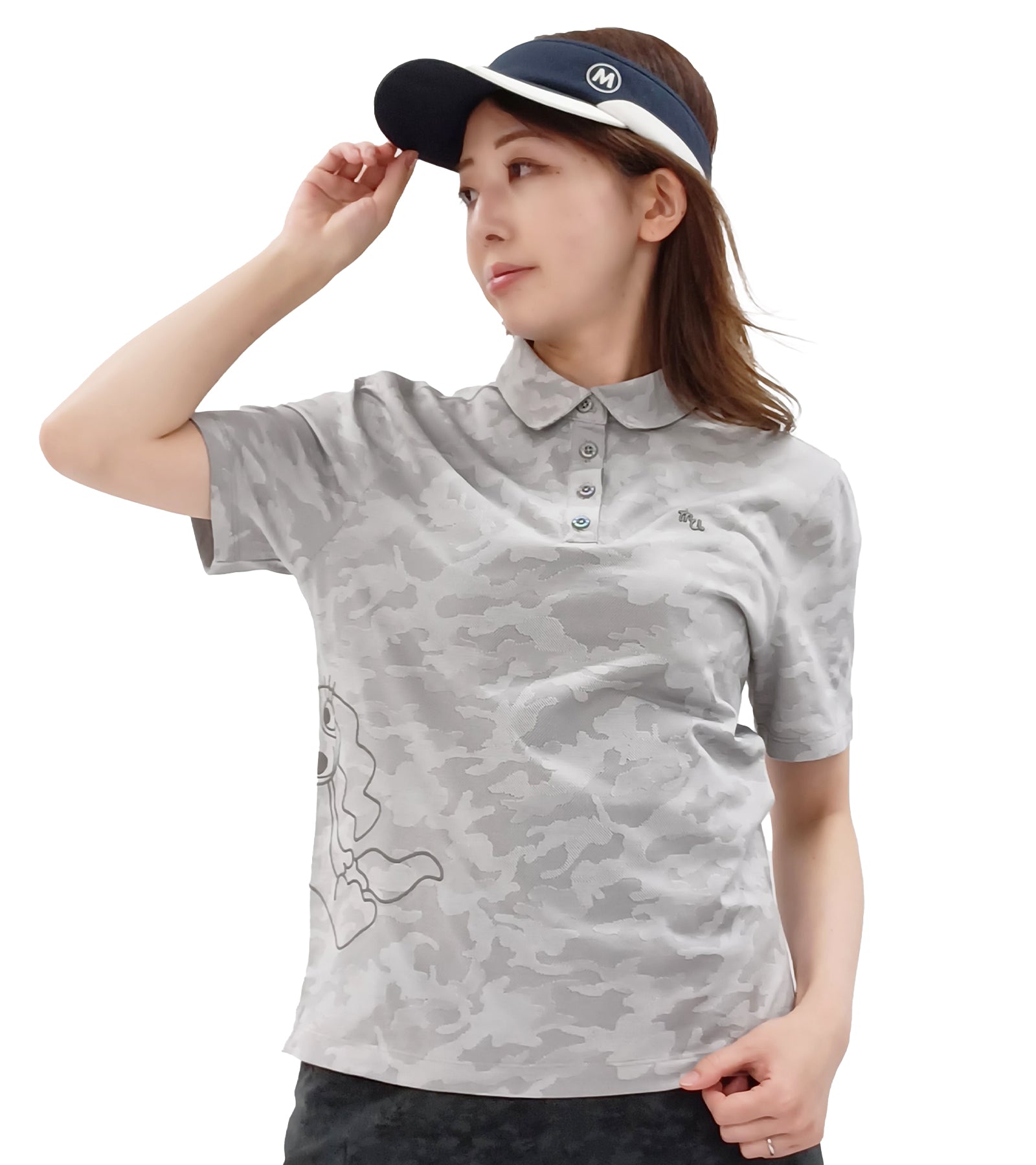 半袖カモフラージュ柄のシャツです。素材は吸水性・速乾性機能があり、さらっとした肌触り。胸には"mu"の立体刺繍、右サイドにはキャラクターを大胆なコード刺繍であしらっております。