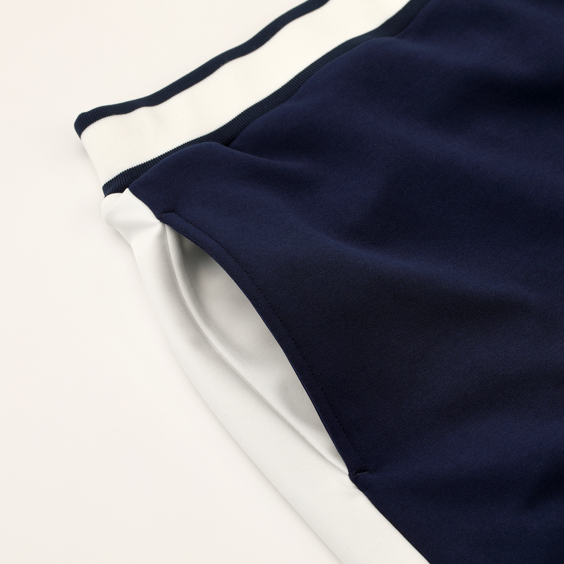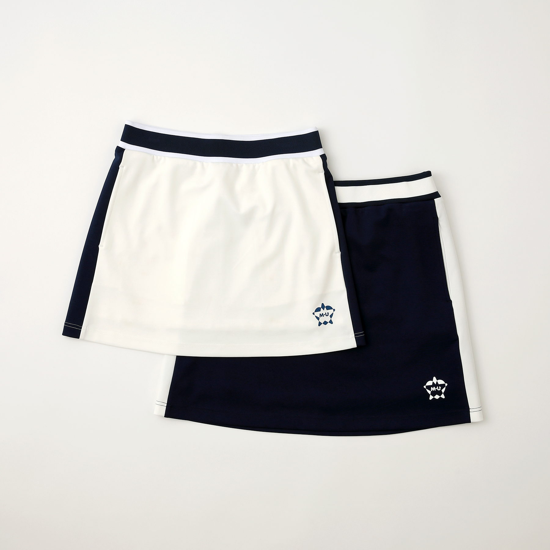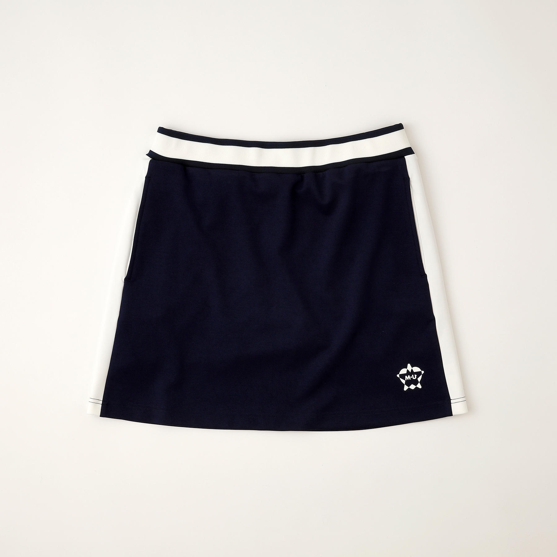 軽やかな装いを演出するポリエステルストレッチのスウェットスカート。