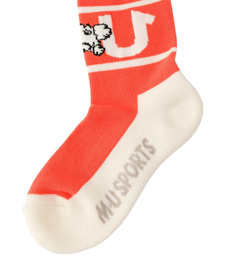 MとUの間にある、シュシュのモチーフがかわいいレギュラー丈ソックスです。