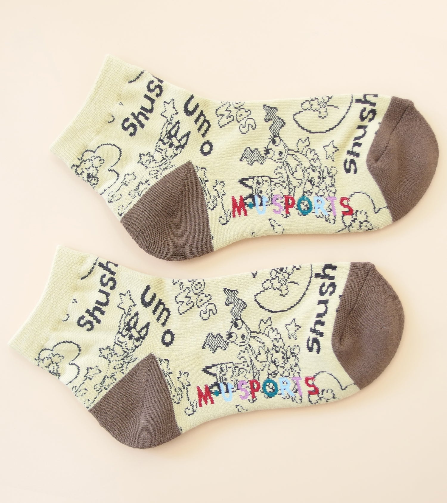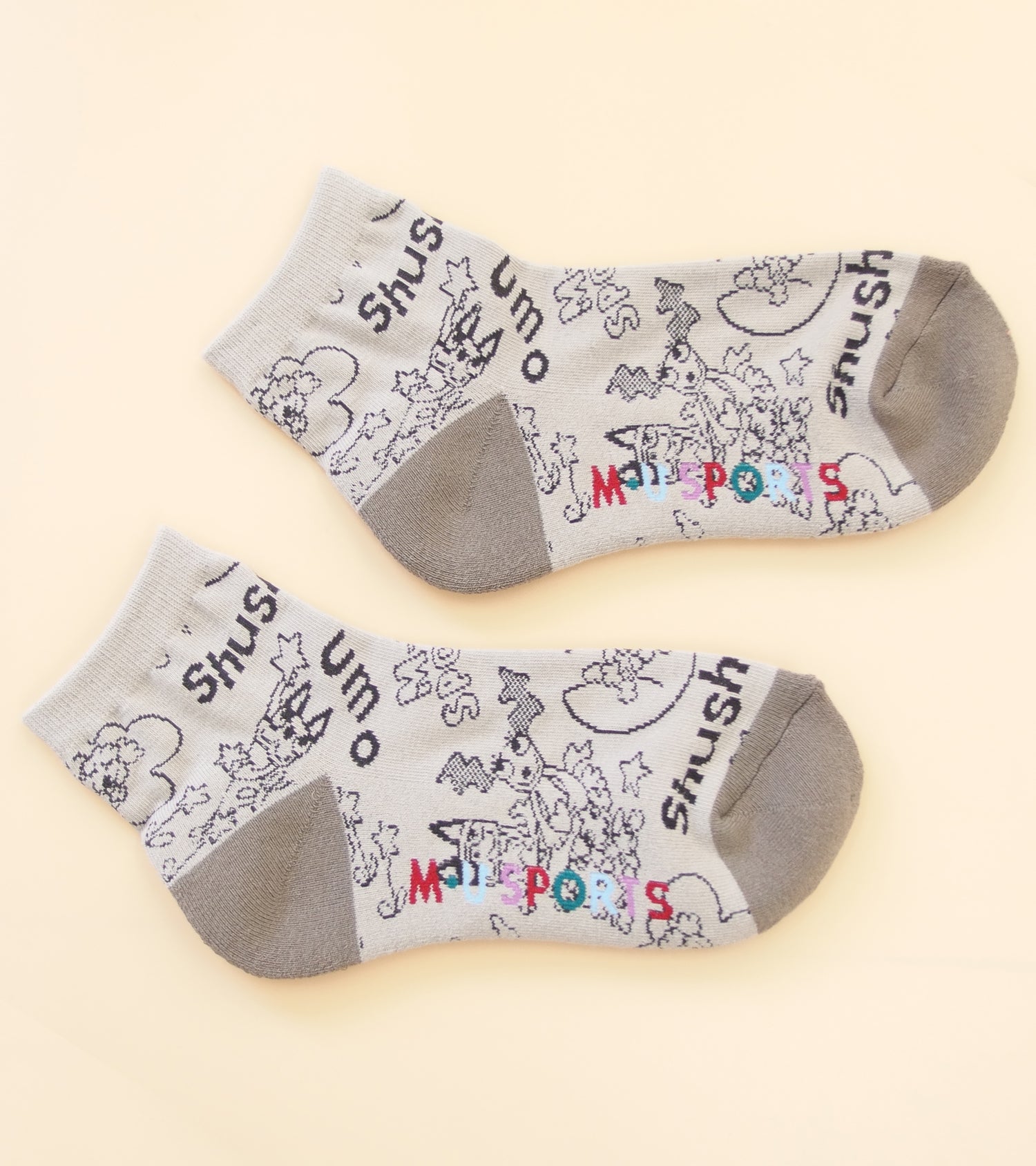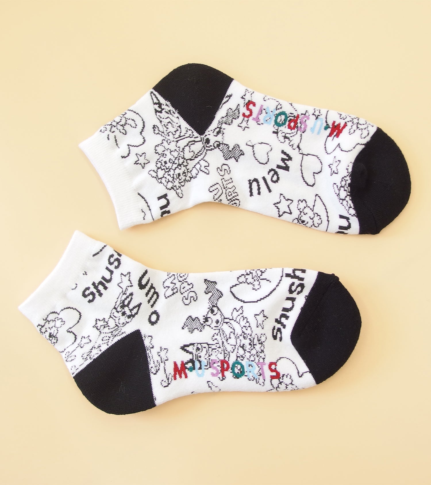 MUらしいポップな総柄が魅力のショートソックス。シンプルなコーデにも映えるデザインで、足元に遊び心をプラスします。