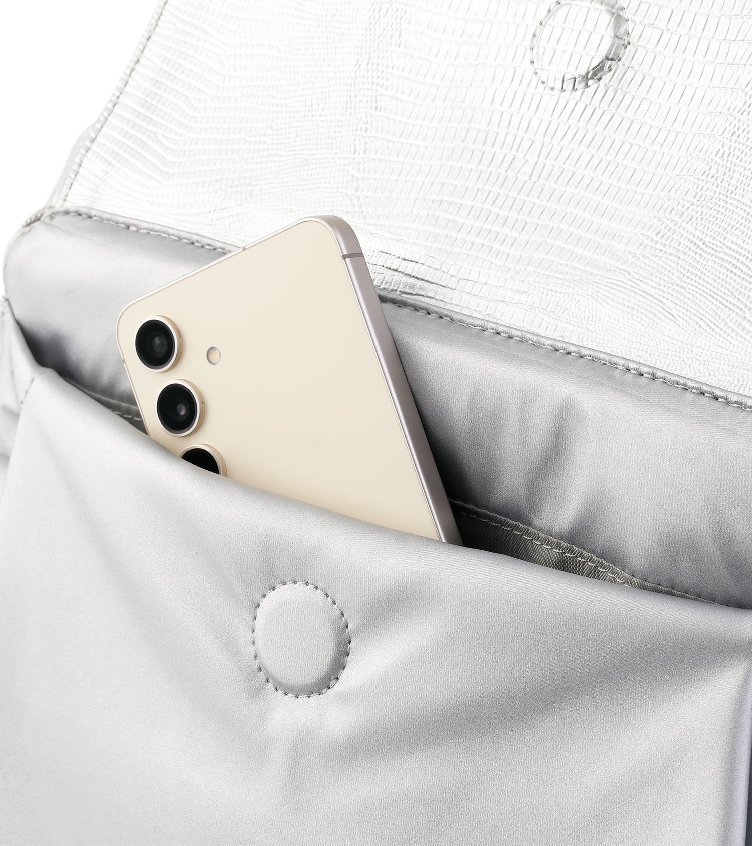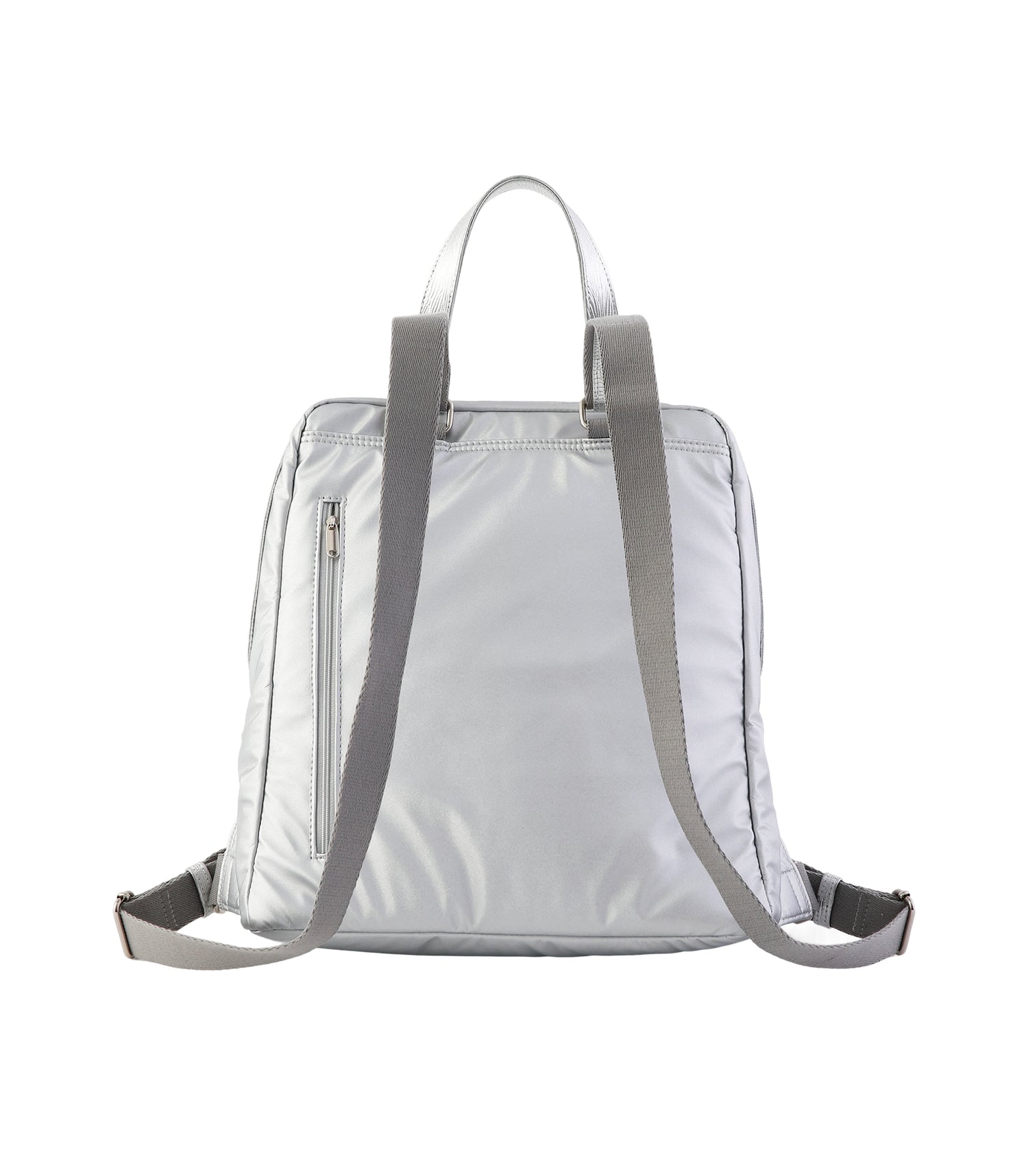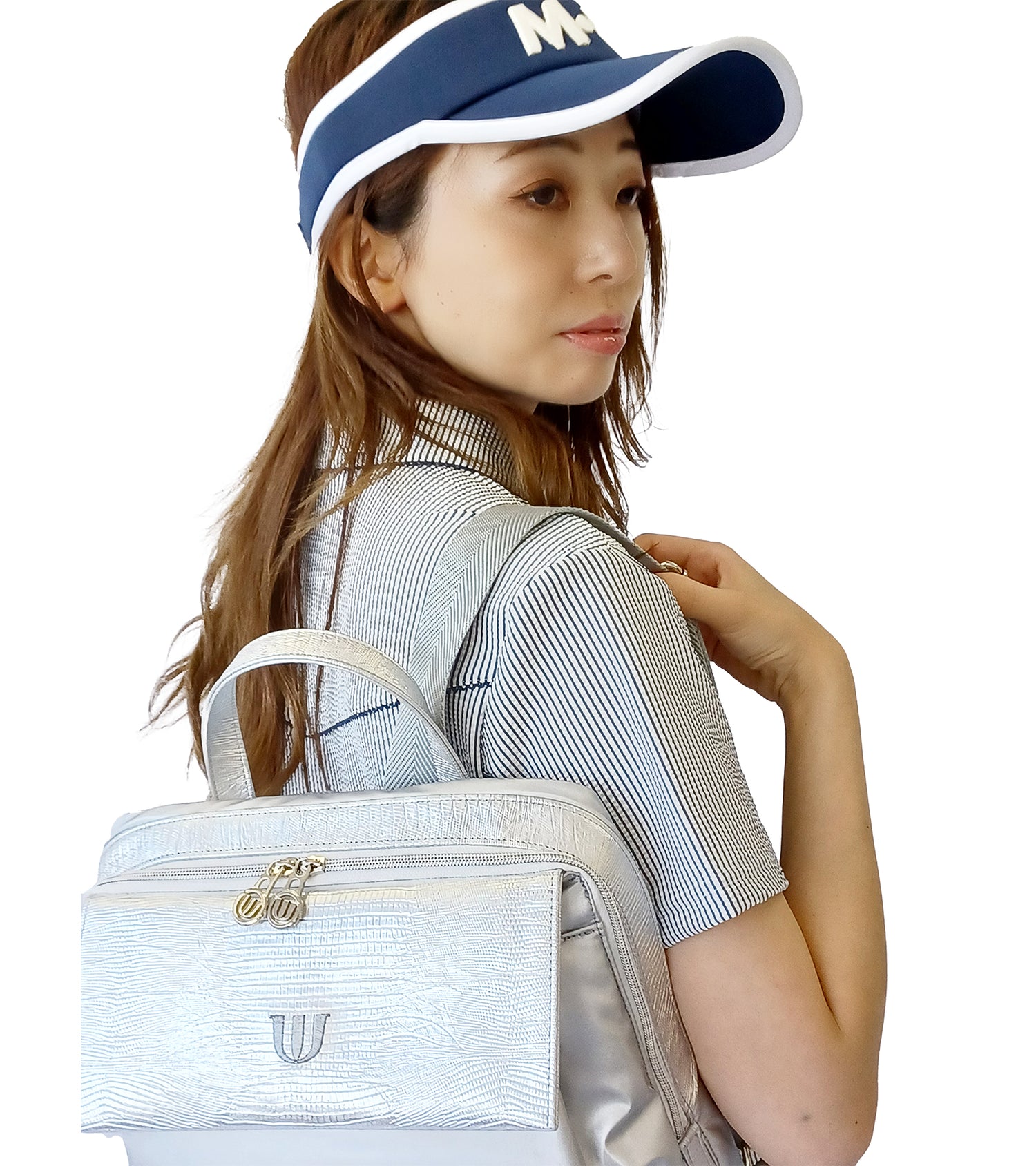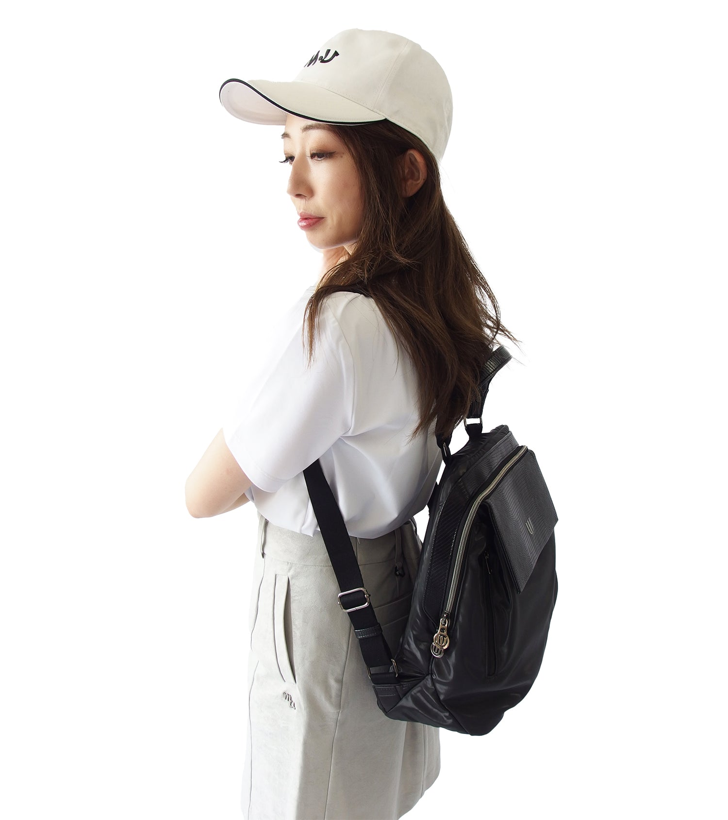 アウトサイドには多くの収納スペースを確保し多機能。インサイドもファスナーポケットや仕切り、折り畳み傘を固定するベルトを装備。全体のフォルムに光沢感のある素材で存在感抜群のリュックサックに仕上げております。