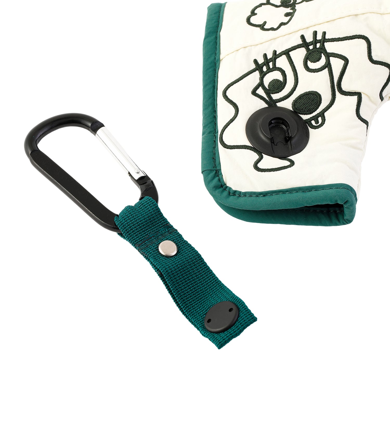 This is a plus one project of the character series with funny long eyes, and the PCP comes with a Fidlock that is easy to remove . When playing golf, attach the carabiner with the Fidlock tape to your belt loop, and when you want to use the putter around the green, bring the cover close to the Fidlock end of the tape and it will automatically stick to the cover with a magnet. When you want to remove the cover, slide it down to remove it easily, so you can enjoy golf stress-free and comfortably.