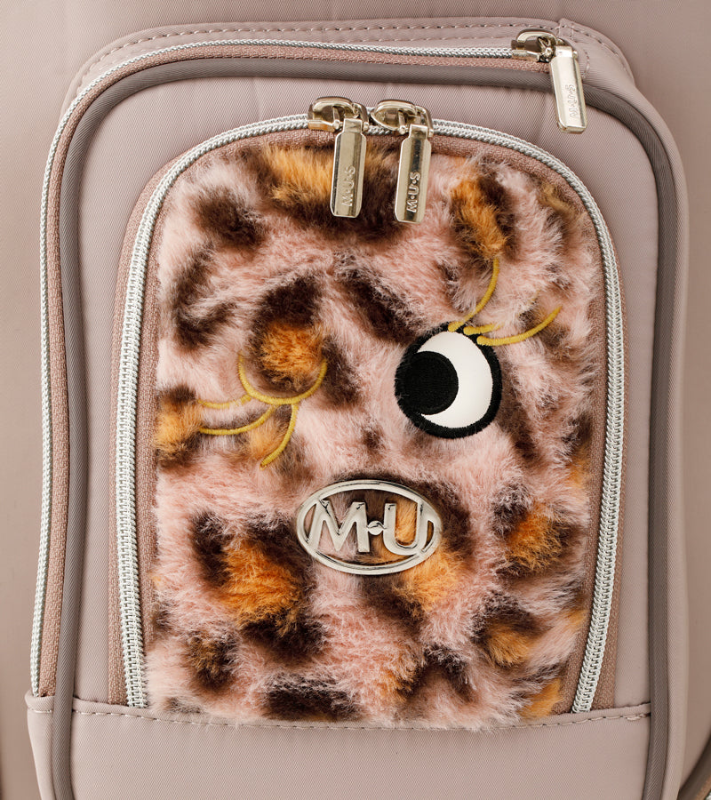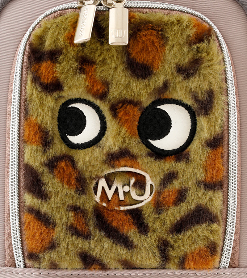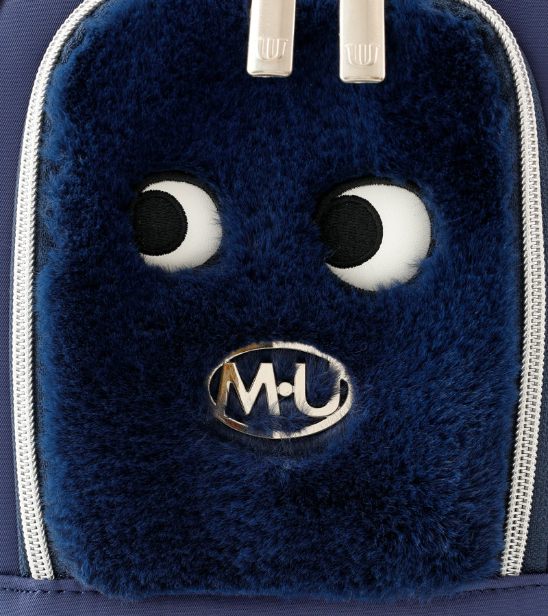 サイドのボア素材に施されたアーモとウインクメルーの目のアップリケ刺繍とMUの金属パーツの鼻がチャーミングで特徴的なシリーズです。