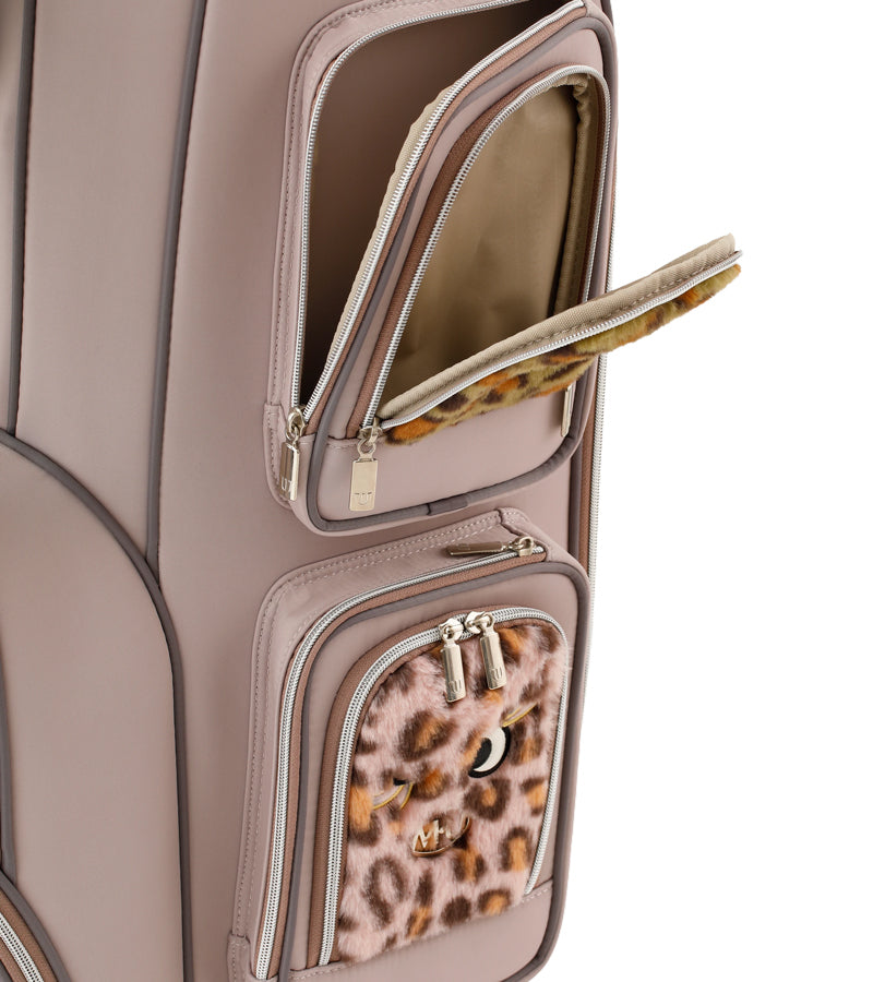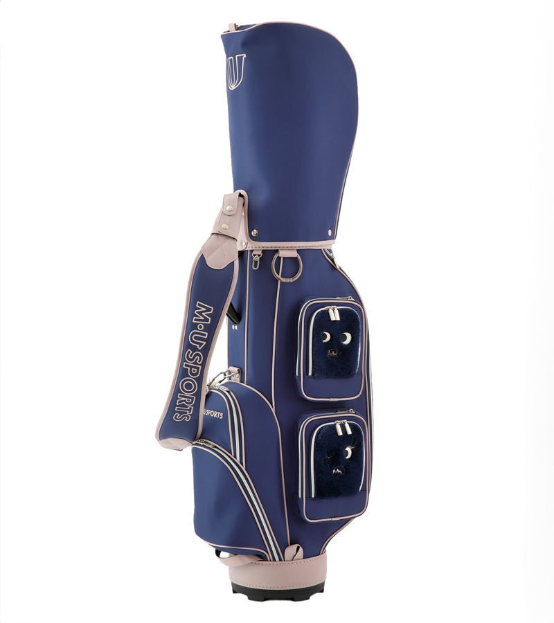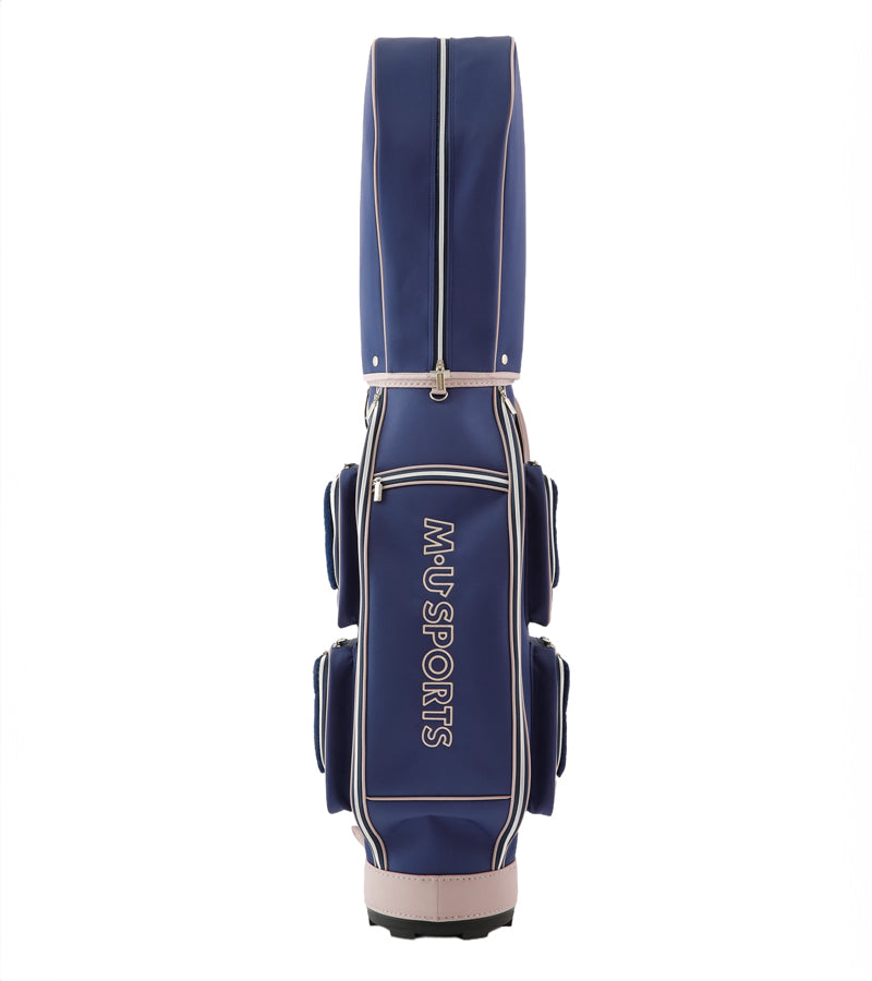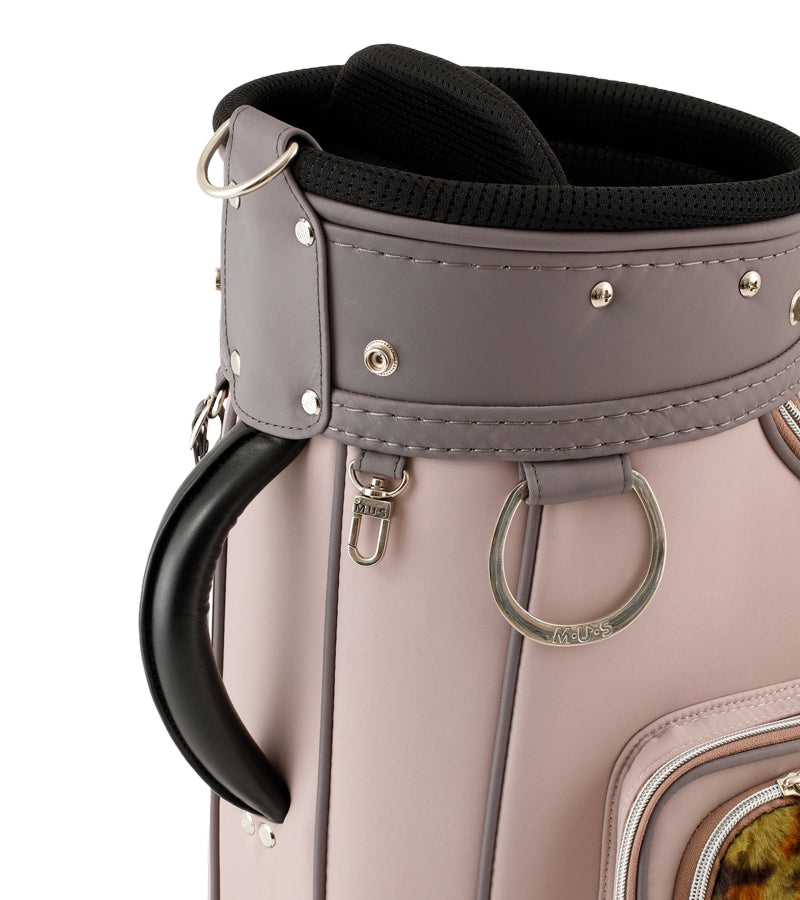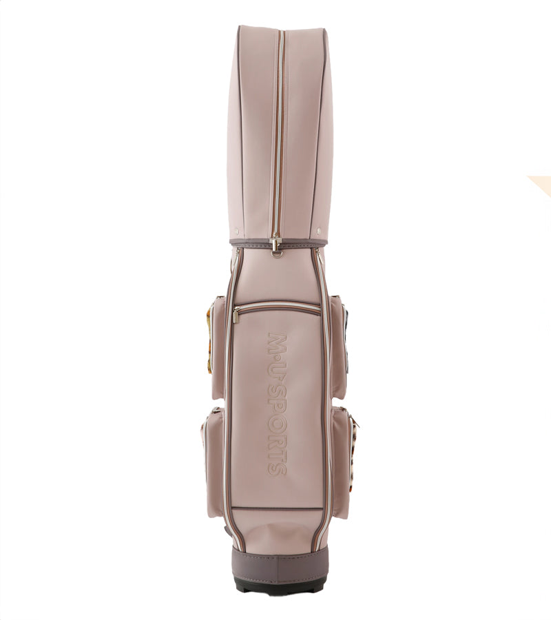 撥水素材のポリエステルツイル生地と肌触りの良いボアを使い合わせた8.5型レギュラーソールのキャディバック。