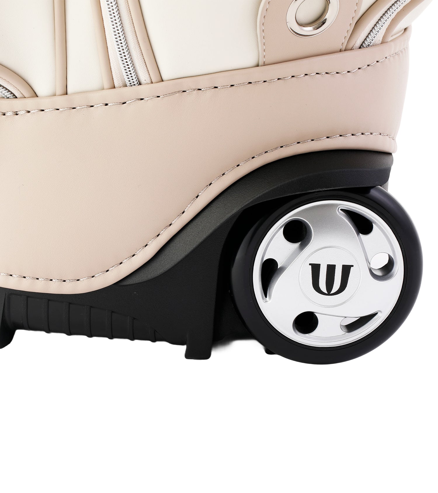 PU素材でも比較的丈夫で軽量な素材を使用したシリーズの9型ローリングソールキャディーバッグ。