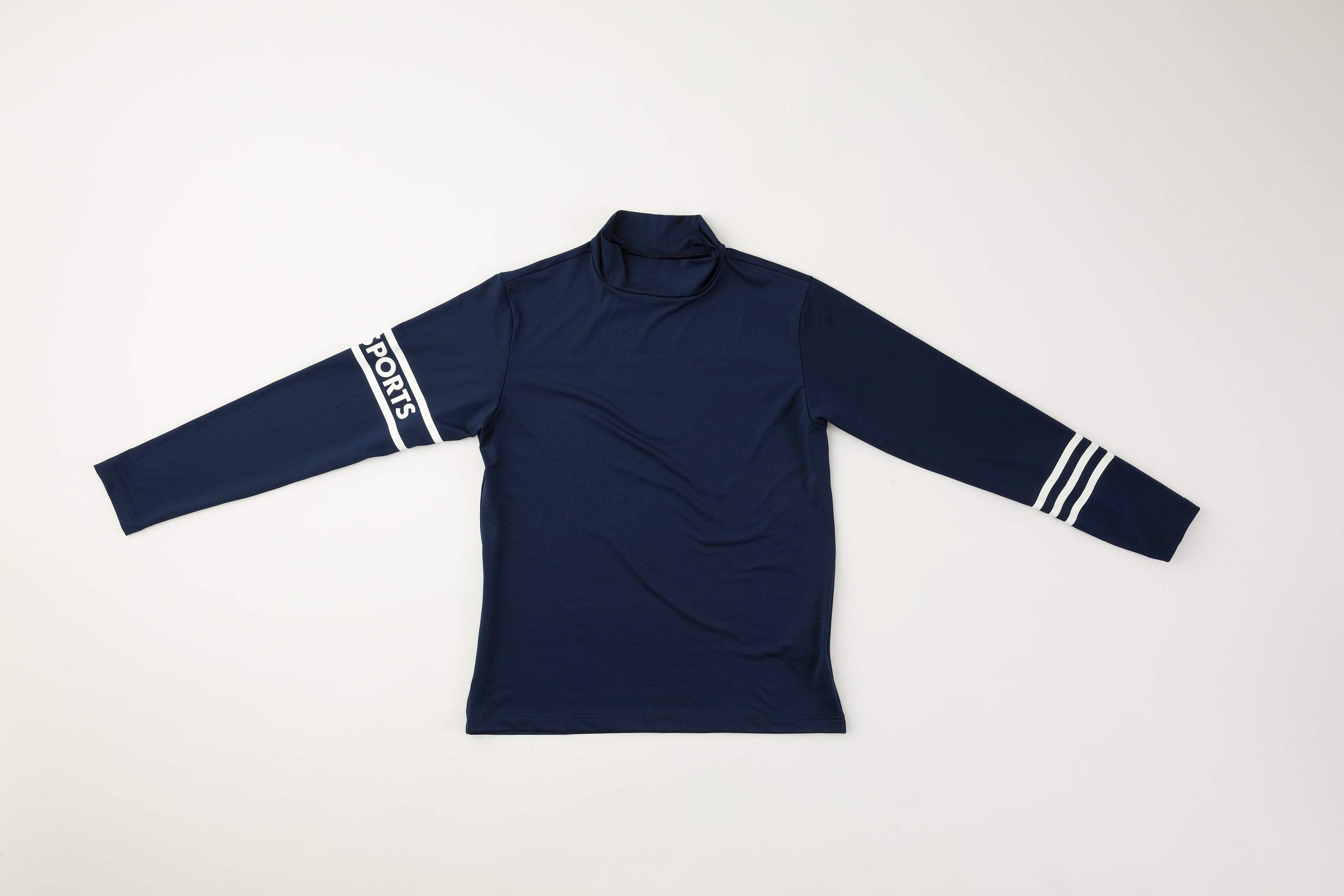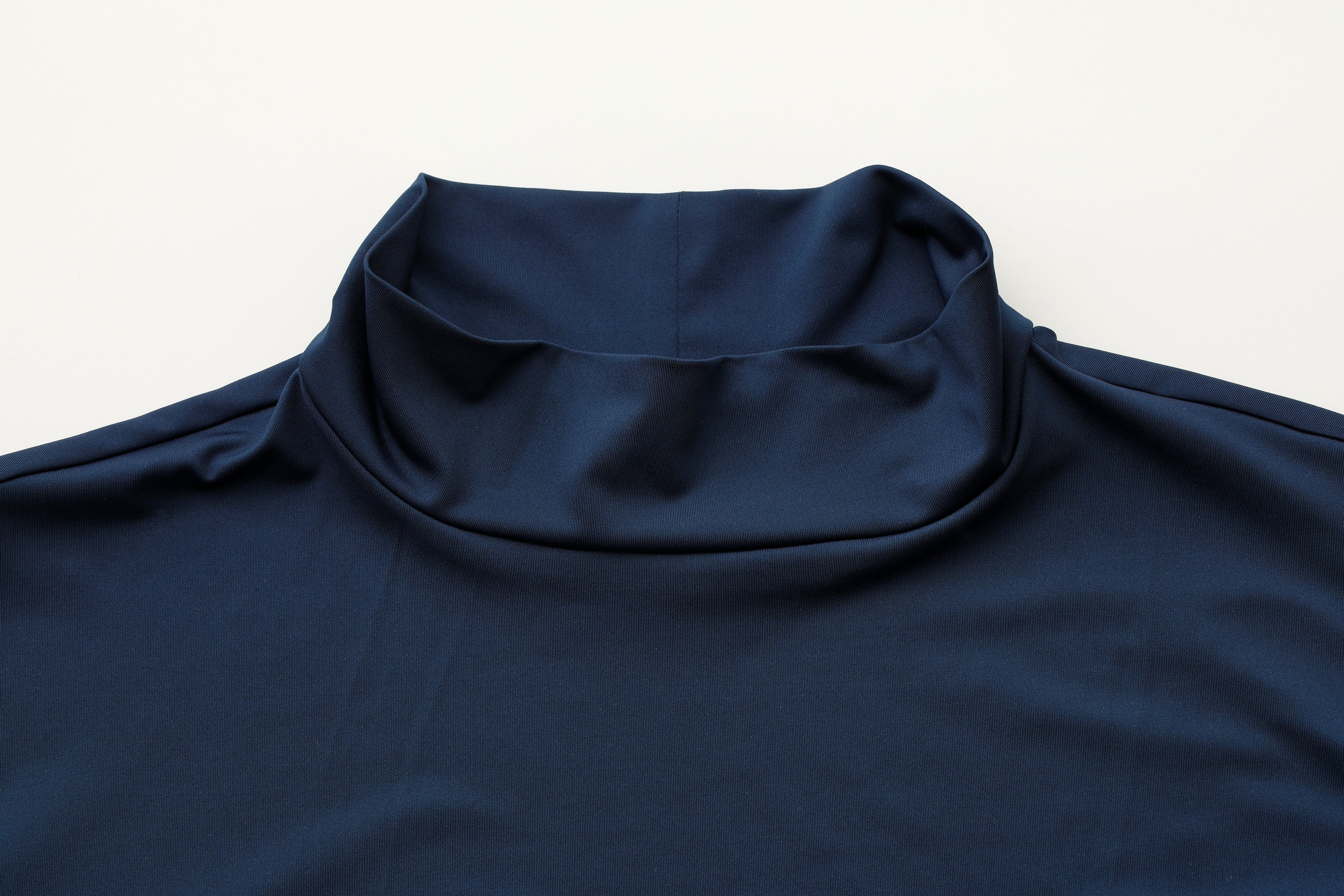 通気性の良いサラッとした肌触りが特徴のポリエステルベア天竺長袖モックネックカットソー。