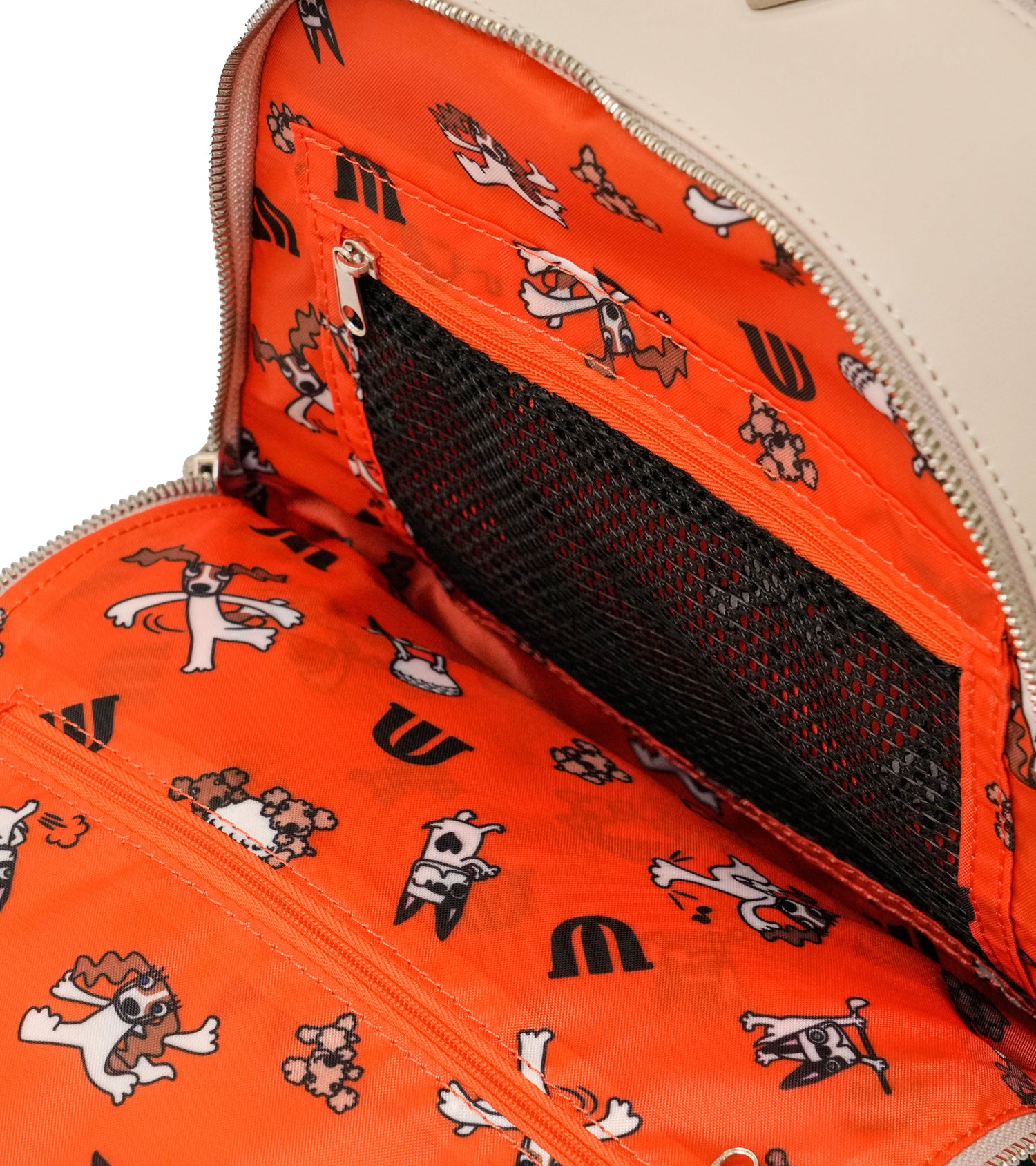高級感を損なわない楽しそうなキャラクターのワンポイント刺繍と、MUらしいカラフルな裏地仕様が特徴的です!内側にはメッシュポケット・ファスナーポケット・タブレットポケット等多機能収納可能でアフターゴルフは勿論、タウンユースにも幅広く活躍します。