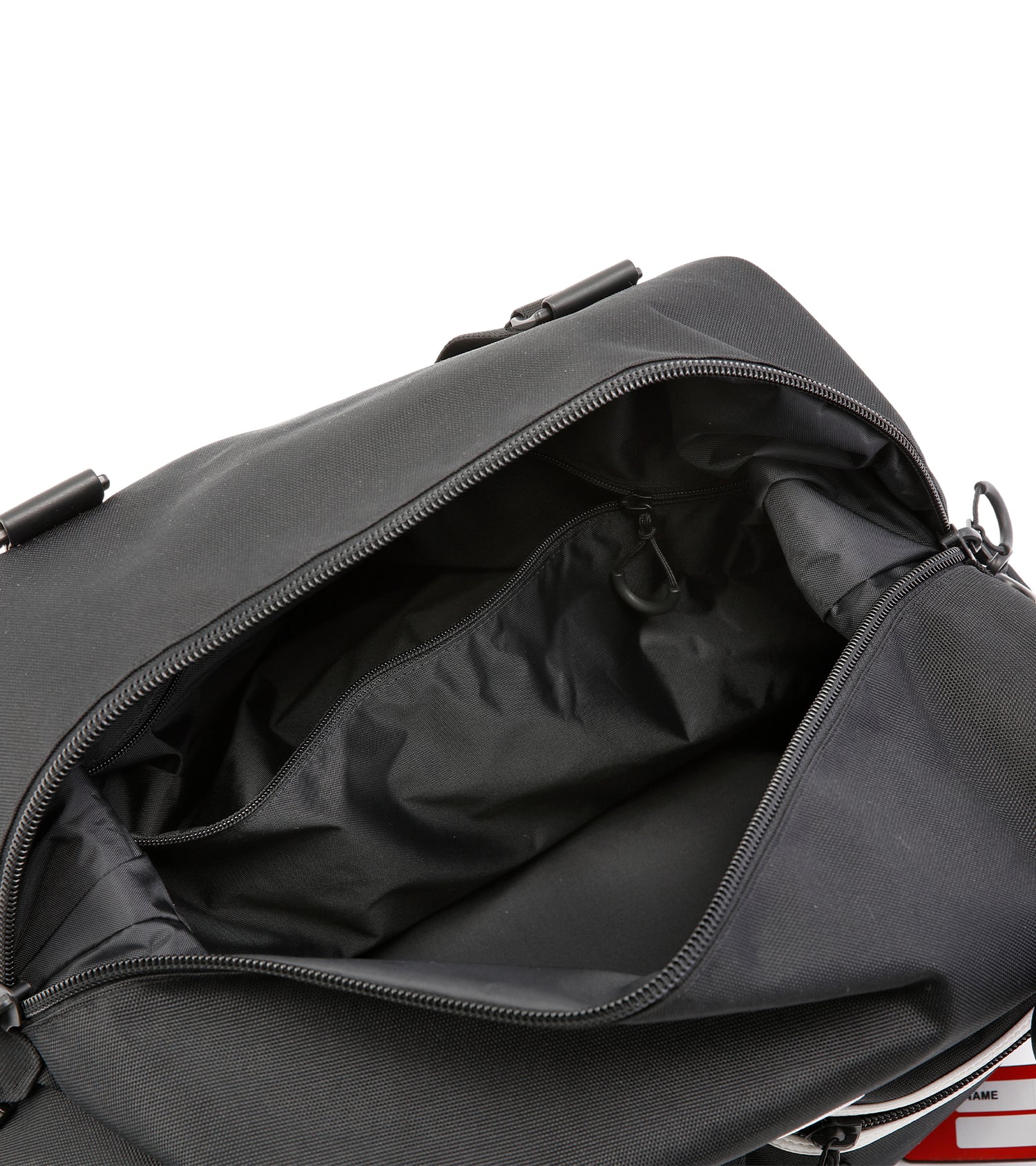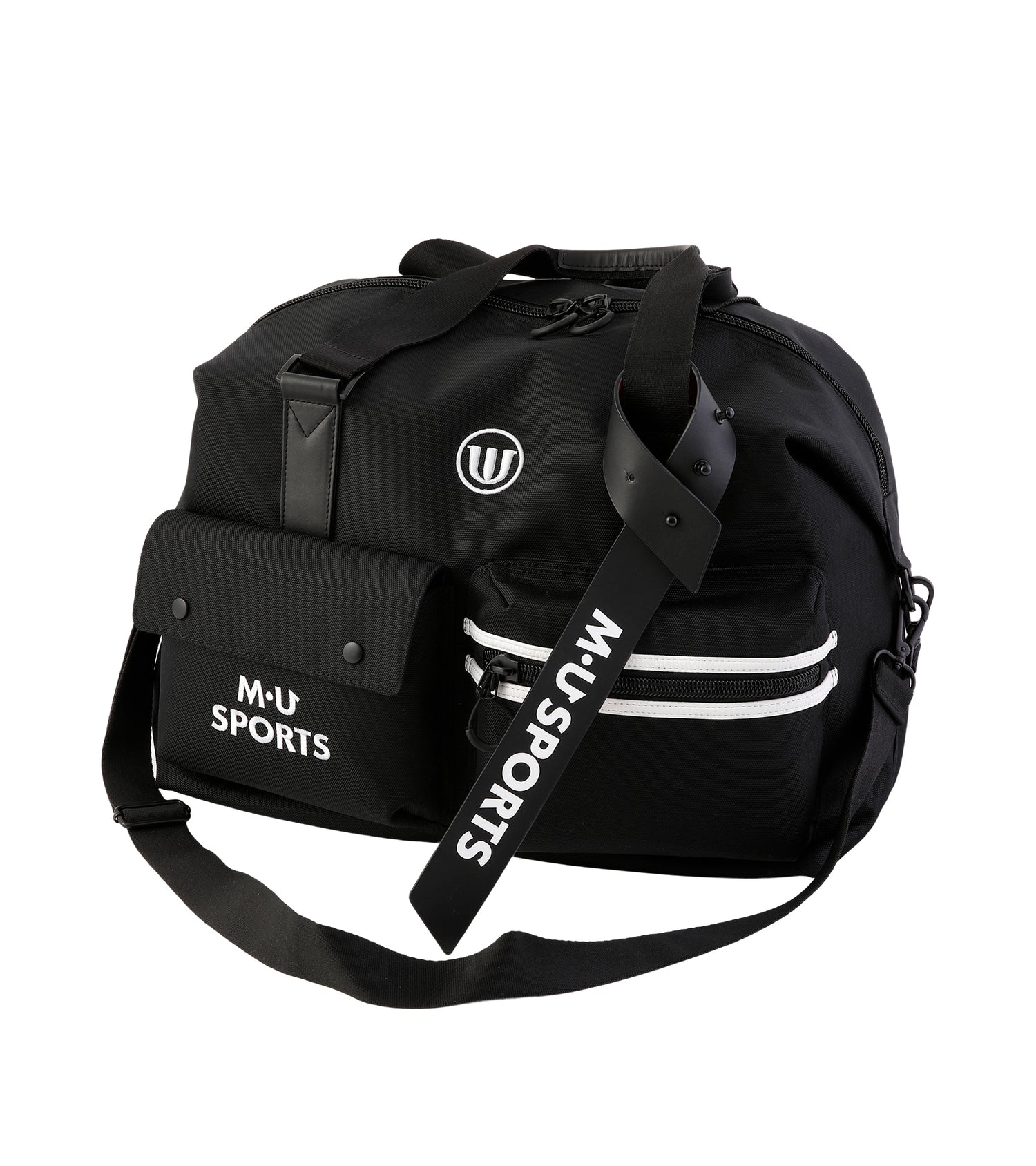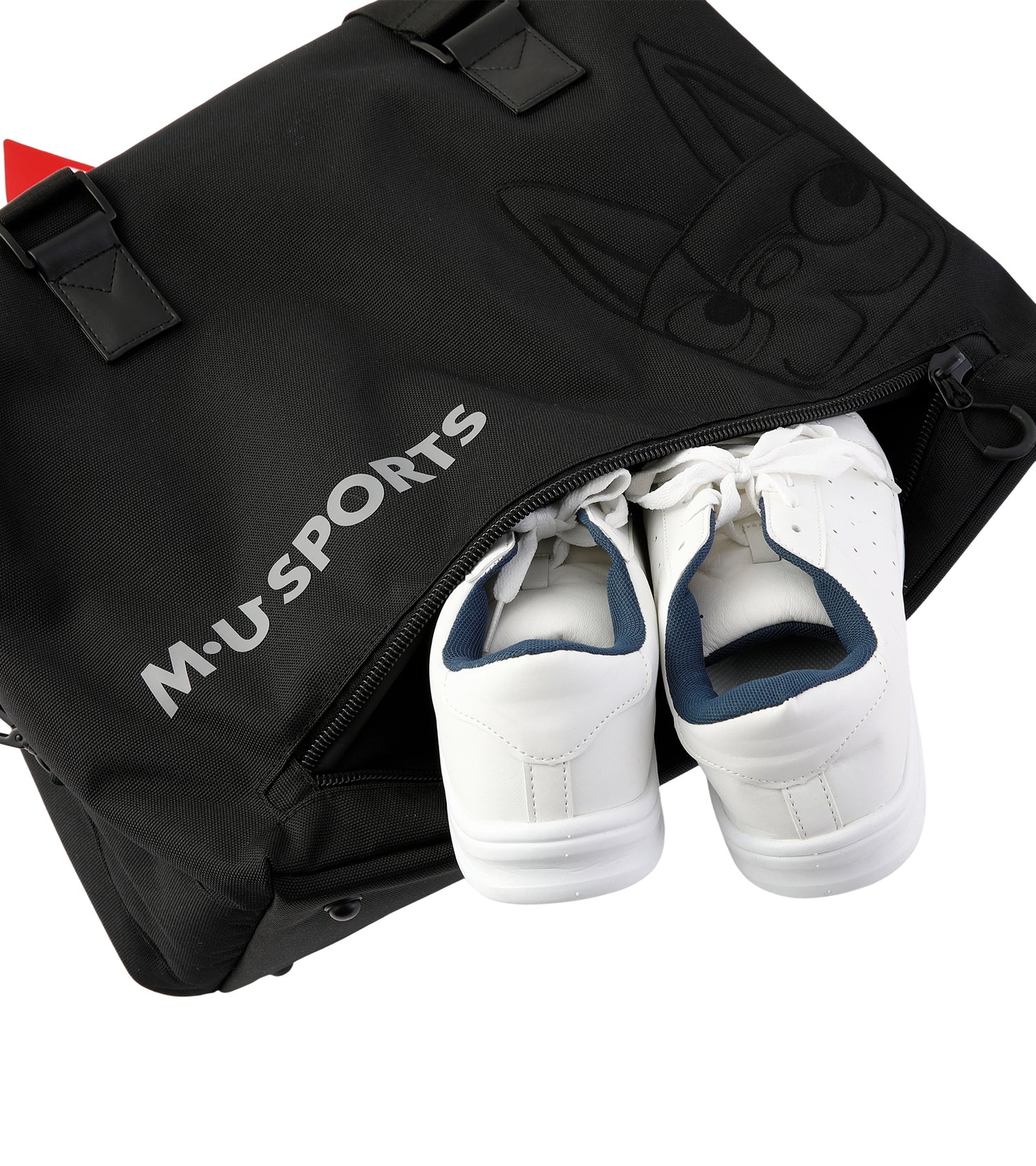 ブランドロゴをシンプルに表現し老若男女使用出来るエイジレス。靴が収納出来る巾着付き。アウトサイドには複数の収納ポケット。インサイドも使い易い複数ポケットを用意。