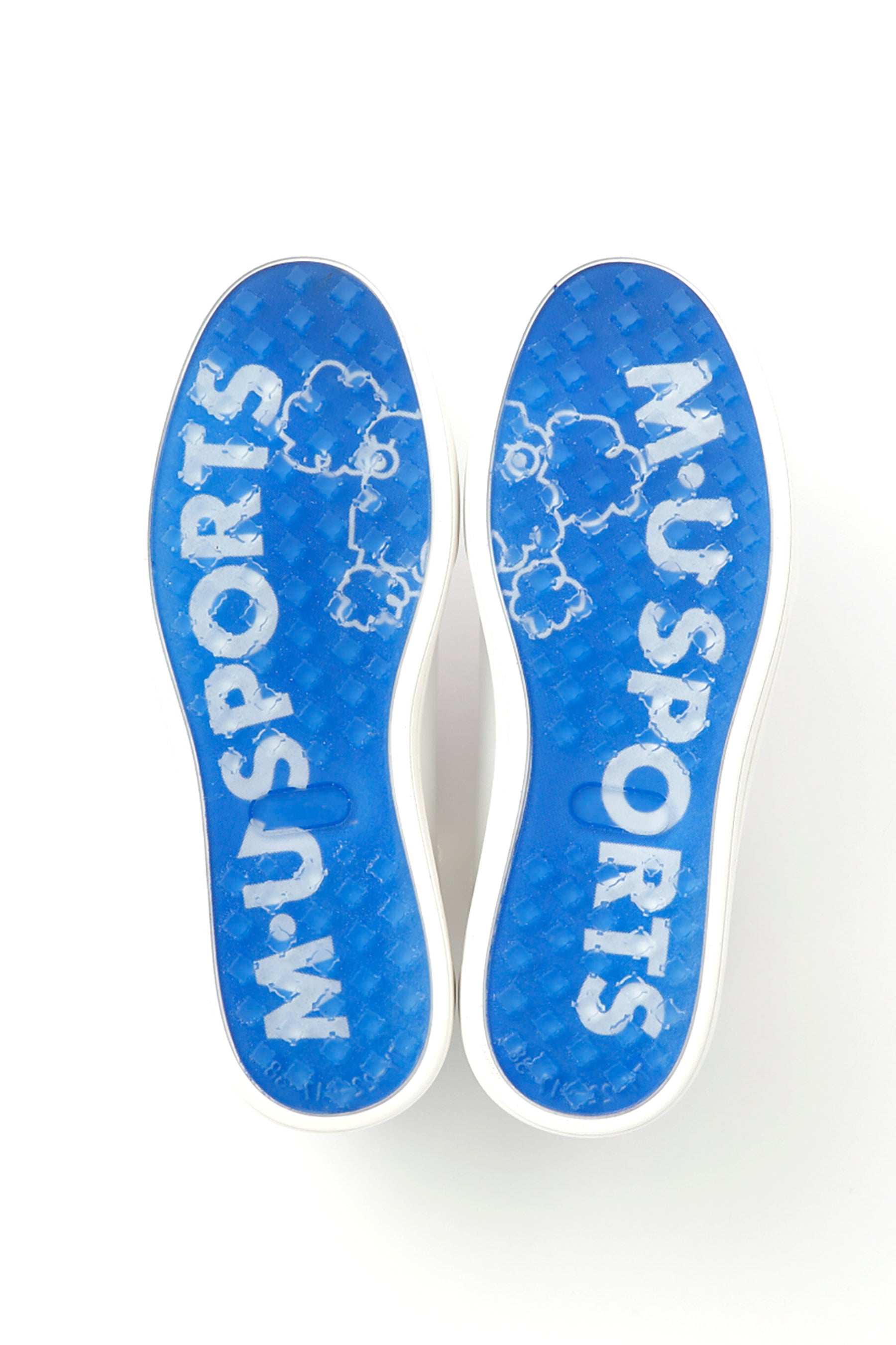アウトソールの半透明な底のMU SPORTロゴとShuShuのキャラプリントの隠れた可愛さが特徴的でコーディネイト幅広くゴルフにもタウンやアウトドアにも大活躍します。