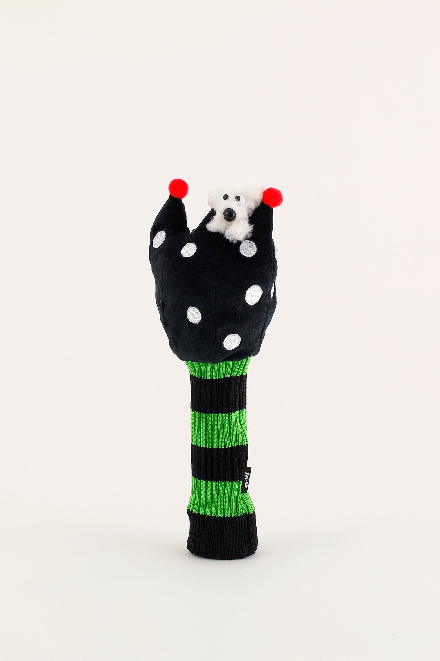 手触りの良い起毛素材を使用したのカラフルな北欧風の花型ヘッドカバーはキャディバック(703Q1112)のアート型にインスパイア―されたシリーズのSHUSHU付きユーティリティー用ヘッドカバー。