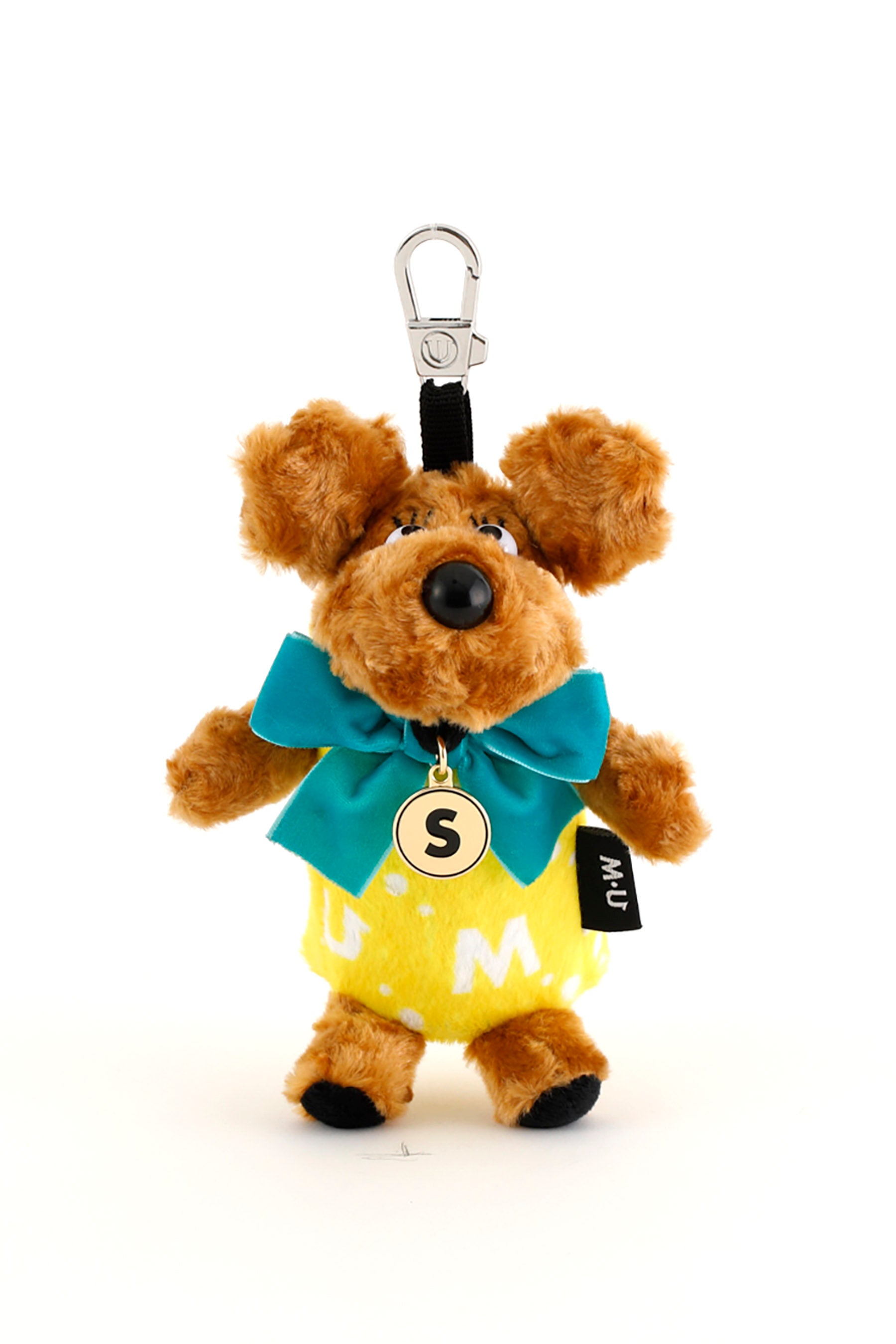 フワフワ感あるクルクルボア素材とモノグラム総柄との使い合わせでベルベットのリボンとキャライニシャル入りの金属チャームポイントのボールホルダー。