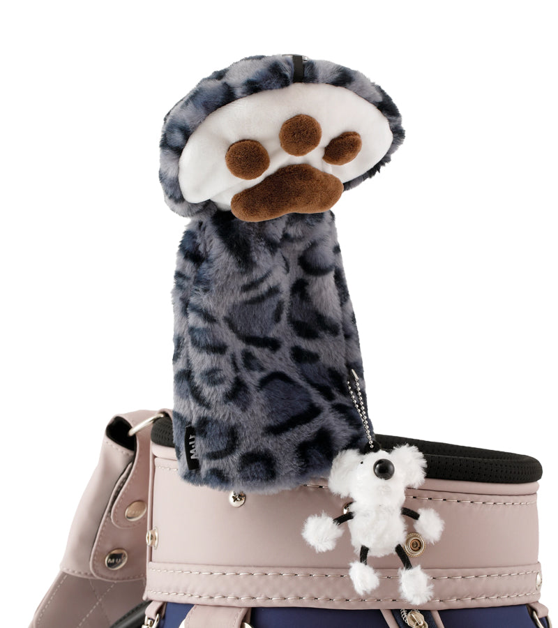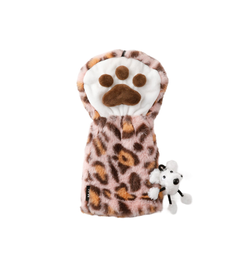兎毛ふわふわ肉球ヒョウ柄FW用ヘッドカバー(703Q6586)