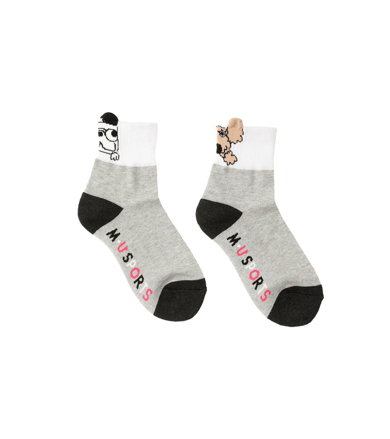 발바닥에 슈슈와 아모가 튀어나오는 입체 표현이 포인트의 짧은 길이 양말입니다.