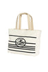 고급스러운 캔버스 느낌의 폴리우레탄 소재를 사용하고, 모노톤의 반대 색상 배색의 스트라이프와 마크 자수가 스포티하면서도 우아한 디자인이 특징입니다. 부드러운 가죽 느낌의 손잡이도 포인트입니다.