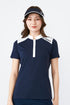 ジップアップハイネック半袖シャツです。襟や肩線がバイカラーになっており、ロゴのプリントが入っております。スポーティーで爽やかな一枚です。